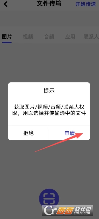 2、进行文件传输需要授予平台访问存储权限即可正常扫描本地文件进行发送。