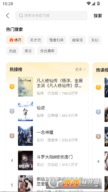 多维度内容检索,不仅有精准关键词搜索,还支持按题材、榜单、热度精准筛选,同人作品等细分板块分类清晰,能快速定位目标内容,大幅节省找书的时间成本。
