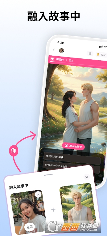 主角代入模式是应用的创新功能,用户可上传个人自拍或照片,系统会将用户形象融入故事场景,让用户成为剧情的 co-star,与心仪的AI角色共同演绎浪漫、冒险等各类主题剧情,还能 replay 场景、探索不同的结局,打造专属的故事瞬间,支持分享精彩场景,满足用户的个性化需求。