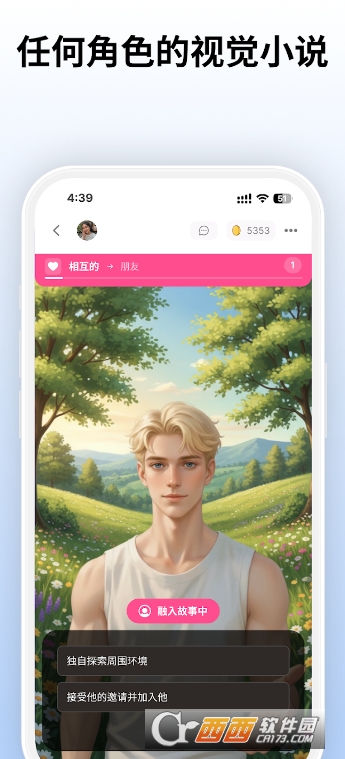 主角代入模式的创新性极具吸引力,区别于同类软件的“旁观式”剧情体验,用户可通过上传照片亲身进入故事场景,成为剧情的核心角色,与AI角色共同演绎专属故事,还能探索多分支结局,打造独一无二的互动体验,同时支持分享精彩场景,满足用户的个性化与分享需求。
