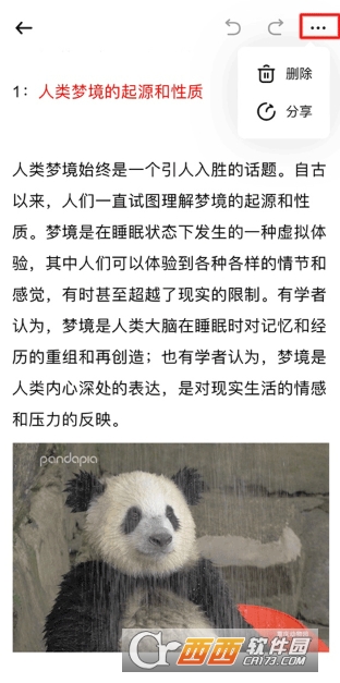 5、点击右上角图标,可以将文章删除或是分享给好友。