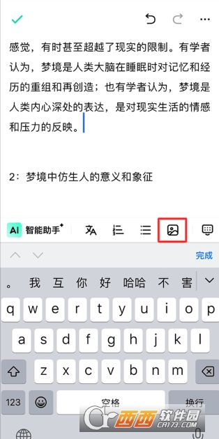 4、还可以在生成的文本中插入图片,将光标放在想要插入图片的位置,点击图标,就可以了。
