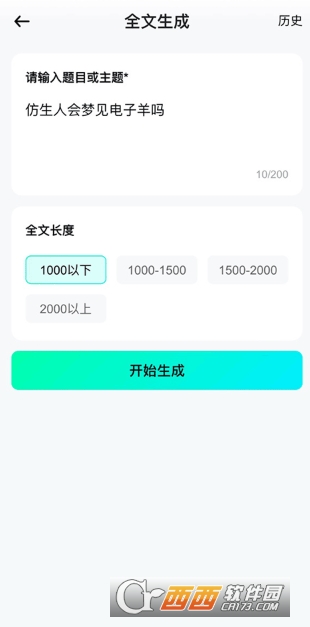 2、输入题目与主题,选择全文长度,点击“开始生成”。