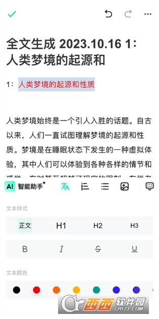 3、根据输入的题目与主题会自动生成文章大纲及正文,点击“编辑”即可对文本进行标注。