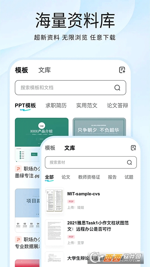 素材丰富,拥有海量范文素材库和 PPT、简历、论文等各类模板文库,可按主题精准检索素材,所有优质资料支持免费浏览下载,为写作积累充足参考内容。