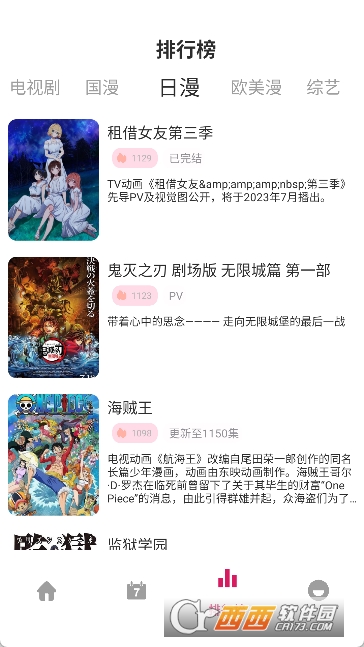 3.内置的排行榜根据当前热度将动漫进行了排序