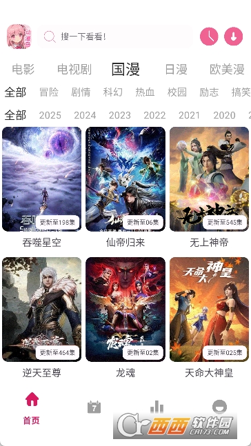 1.用户进入到动漫岛X软件首页以后可以看到很多的动漫类型,日漫.韩漫以及国漫都有