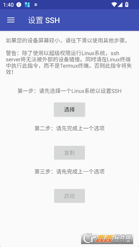 支持开启 SSH 远程管理服务,电脑可跨设备远程连接并控制手机中的 Linux 系统,实现多设备协同操作,外出也能远程调试代码、管理系统。