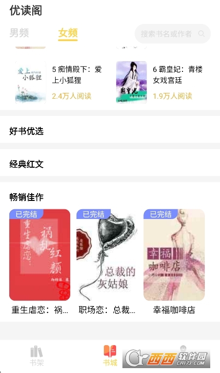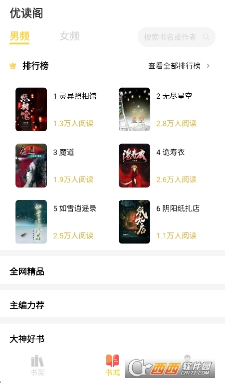 优读阁最贴心的设计是将小说按男频和女频分开,每个频道下又有详细的分类榜单: