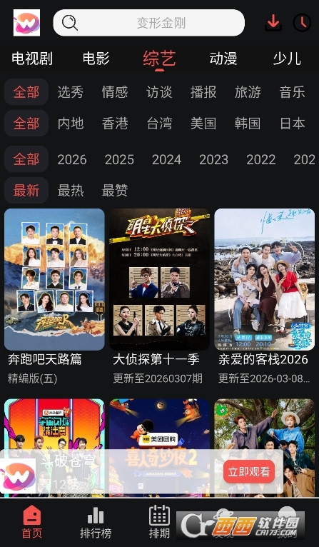 3、综艺:热门综艺、真人秀、脱口秀。