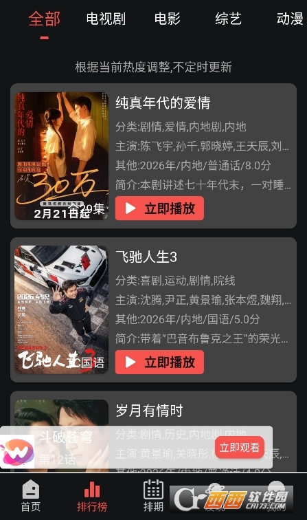 若惜追剧无广告纯净版下载是一款以“纯净、免费、全面”为核心理念的影视聚合应用。它整合了全网海量影视资源,涵盖电影、电视剧、综艺、动漫、纪录片等各类内容,无论是最新热播剧,还是经典老片,都能在这里轻松找到。作为“无广告去更新版”,这款应用彻底移除了所有形式的广告,同时关闭了烦人的自动更新提示,让你可以安安静静地追剧,不受任何打扰。