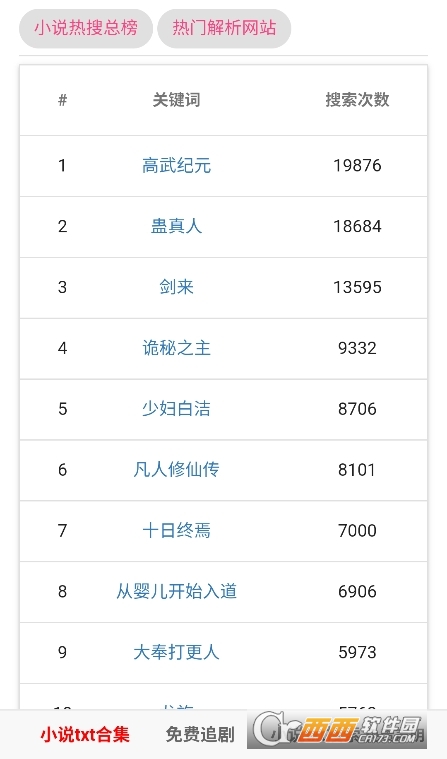 2、点击查看小说榜单,可以查看点击率