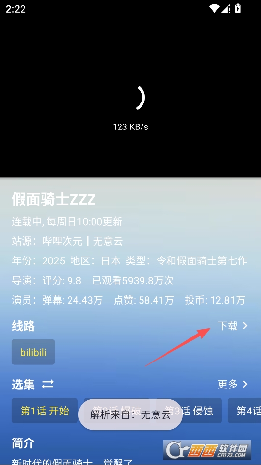 在播放界面点击下方的下载按钮