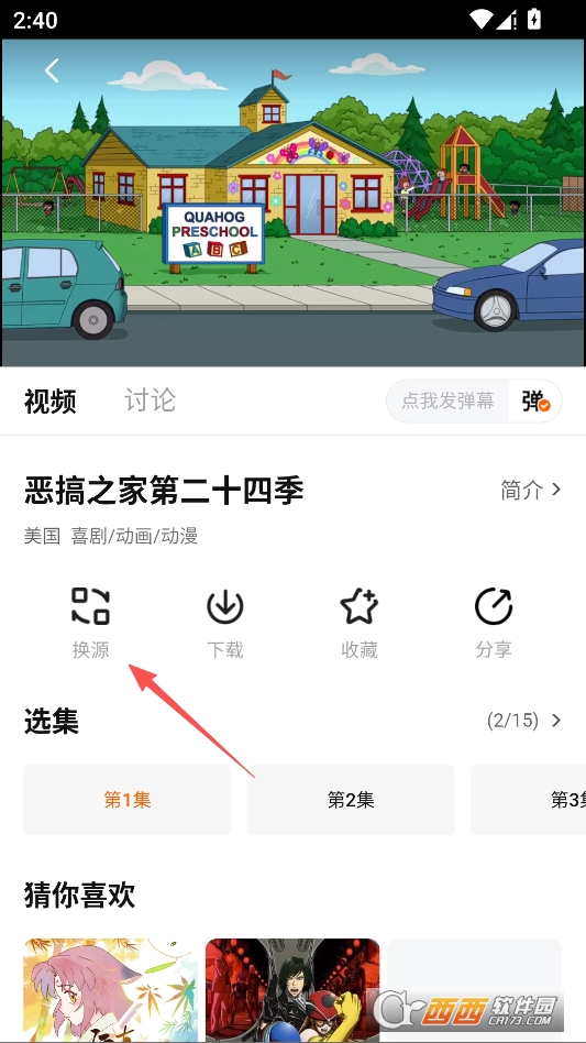 在资源详情页,点击换源