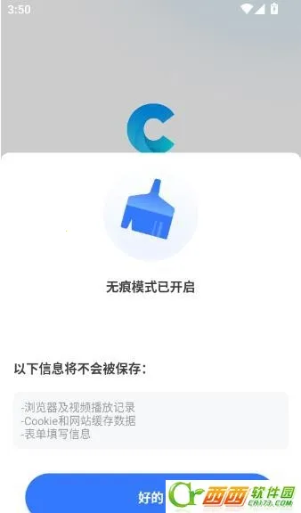 4、然后就可让你一键开启无痕模式,点击“好的”按钮来实时开启。