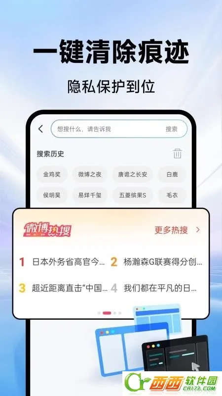 2安全隐私搜索及访问内容可一键清除,快速清理隐私。