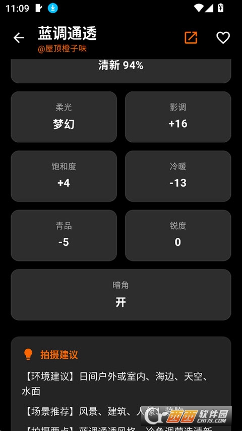 1.告别参数焦虑:它以简洁清爽的界面整合所有调色参数,让用户无需在海量信息里盲目搜寻,彻底告别找拍照参数难、参数杂乱的困扰。