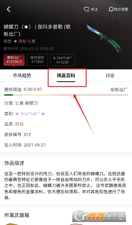 2、点击查看详细的饰品价格社区