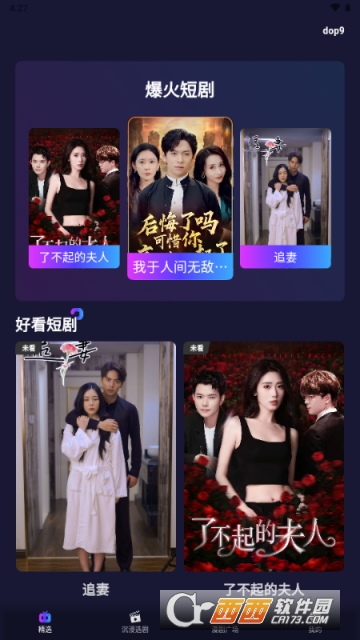 2、进入精选页面后可以看到各种爆火短剧