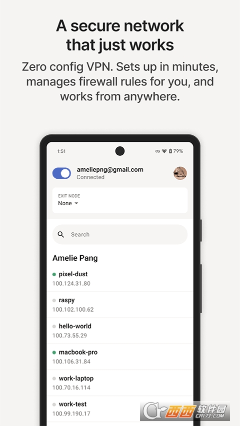 Tailscale安卓中文版是一款专为安卓手机设备用户打造的专业级网络管理工具,能够将你所有的智能设备都连接到你专属的私人网络中,支持手机,平板,服务器。同时还能通过软件查看IP地址身份,根据当前用户给予相关权限内容,保障用户的网络浏览安全,随时随地连接电脑进行安全办公。