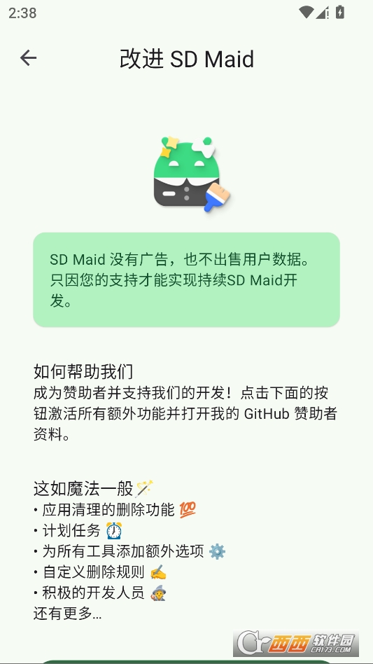 SD Maid SE是一款轻量化、高适配、易操作的Android系统优化工具,核心定位是新版系统适配、自动清理、高效便捷。软件无需复杂设置,界面简洁直观,操作逻辑清晰,新手也能快速上手,轻松完成手机清理优化。软件作为SD Maid的续作,延续原版核心优势,优化适配新版系统,同时新增自动化操作功能,实用性大幅提升。