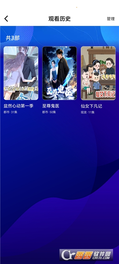 4、部分的记录都可以在我的历史记录查看,方便你更好的观看未观看的集数,点击管理还可以删除相应记录。