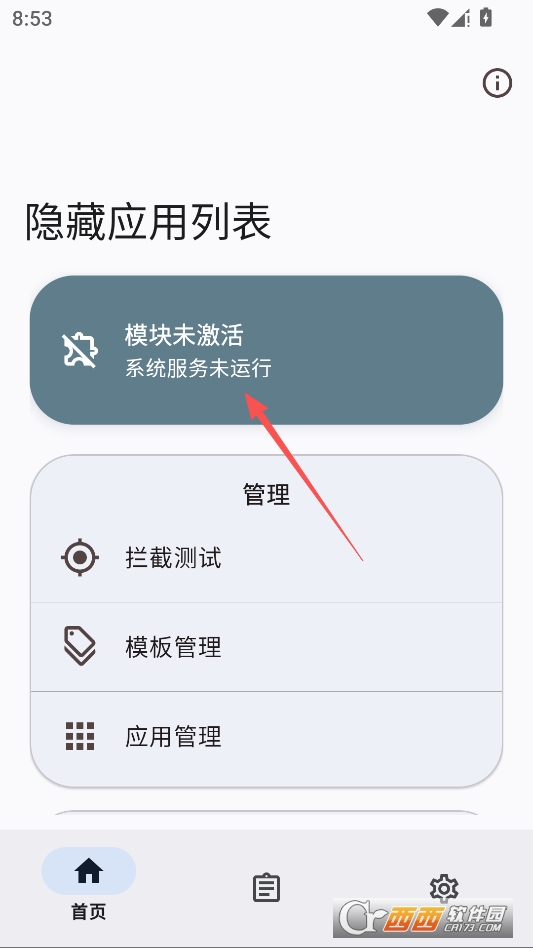 首次下载打开软件进入首页先点击激活模块