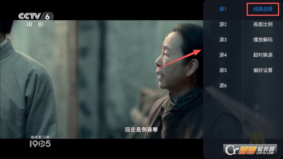 即可呼出设置菜单,在菜单中首个选项就是线路选择,切换不同的播放源尝试即可