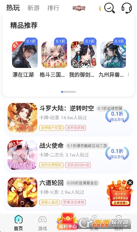 2. 游戏资源丰富,热门网游及经典手游全覆盖,还有持续更新的新游资源,满足多样需求。