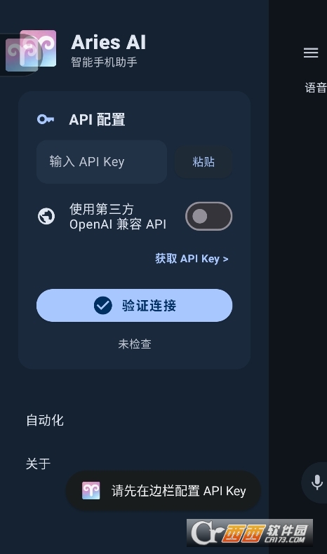 AriesAI安卓版下载官方版是安卓端强大的AIAgent,配置api后能让普通手机实现AI自动化功能,高效准确完成复杂命令,它兼容OpenAI接口,可手动添加多个大模型,广泛用于订票、写作、生图、办公等场景,配置api步骤简单,进入软件按要求开启权限,点击首页三条横杠粘贴地址即可,开启小窗口悬浮设置直接在首页点击框出界面就行,上传文件也方便,在首页点击选择文件就能上传,支持多种模型,涵盖国内、国际、开源模型及API聚合平台、自部署模型等。