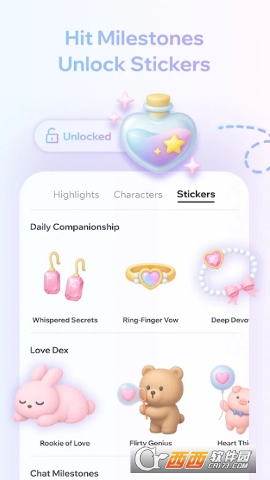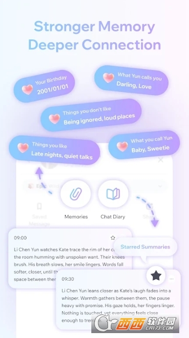 4、深度文字互动,越聊越懂你:先进的AI对话引擎支持多轮复杂对话,角色能够理解上下文、记住你的喜好、感知你的情绪。聊得越久,TA越懂你,给你越来越真实的恋爱感受。