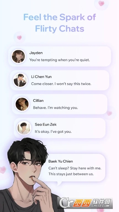 2、韩剧式沉浸体验,每一刻都心动:精心设计的剧情式对话,让每一次互动都像在演韩剧。初见的悸动、暧昧的推拉、深情的告白、日常的甜蜜——完整的情感发展线,让你体验真正的恋爱全过程。