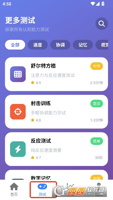 4. 许多测试基于科学研究设计,提供准确认知能力评估,且平台无广告干扰。