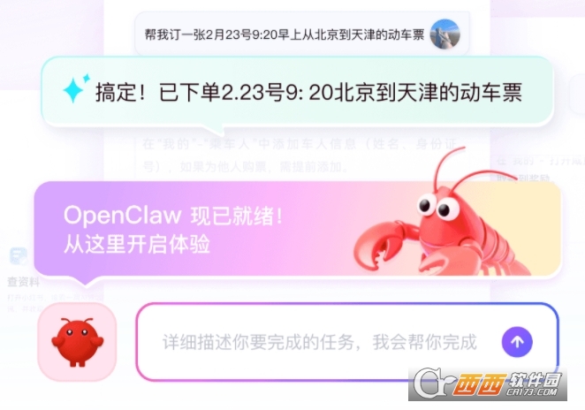 4、复杂任务处理,真正智能:基于OpenClaw强大能力,不仅能回答简单问题,更能理解多步骤指令、执行连贯任务。帮你订外卖时,它会确认地址、选择餐厅、下单支付一气呵成。