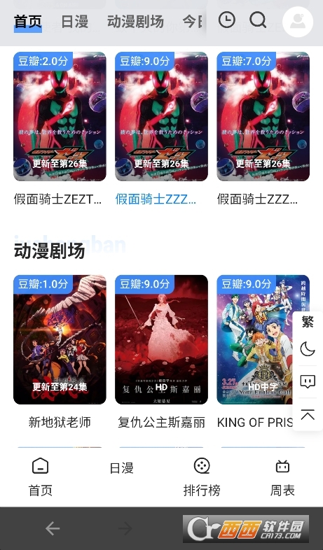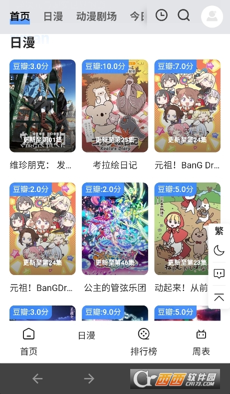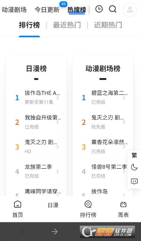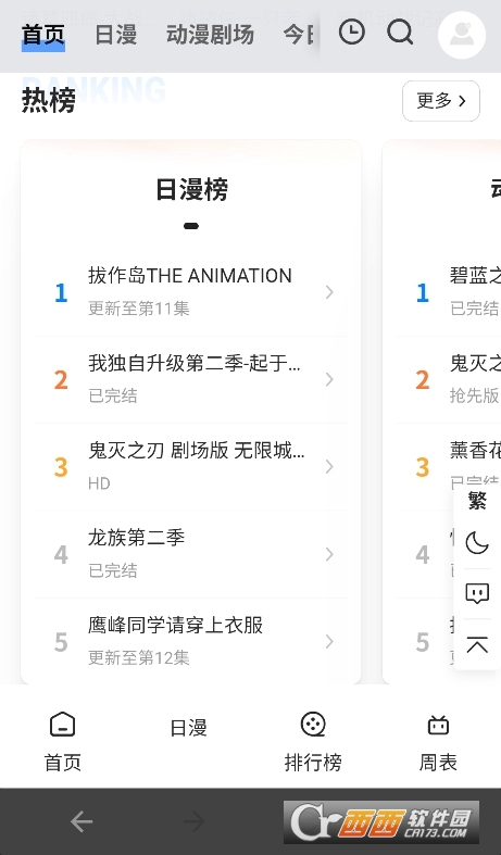 4、点击“新番”标签,查看当季新番列表和时间表。