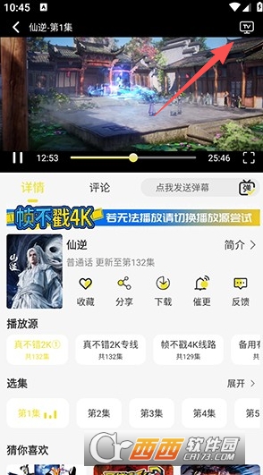 在资源详情播放页点击右上角的投屏选项