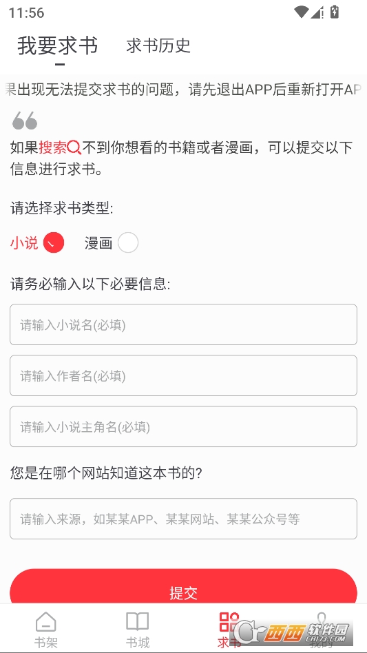 点击主页下方的求书按钮