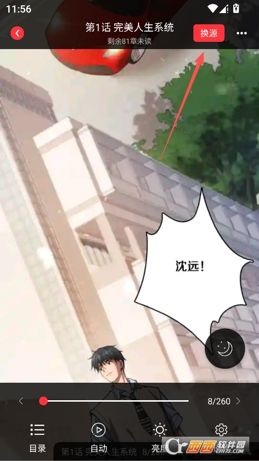 点击漫画观看界面右上角的换源按钮