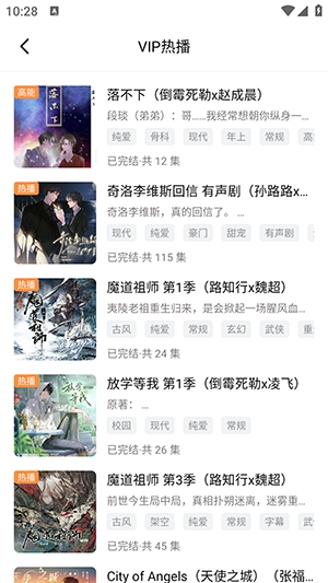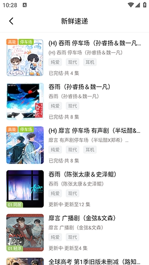 2、软件对广播剧、小说、漫画资源系统化分类,清晰直观,方便定位题材,通过搜索或筛选轻松找感兴趣内容。