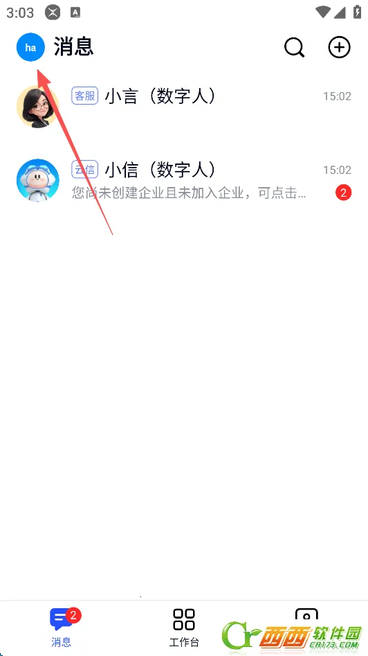 1、点击屏幕左上角的“头像”标识。