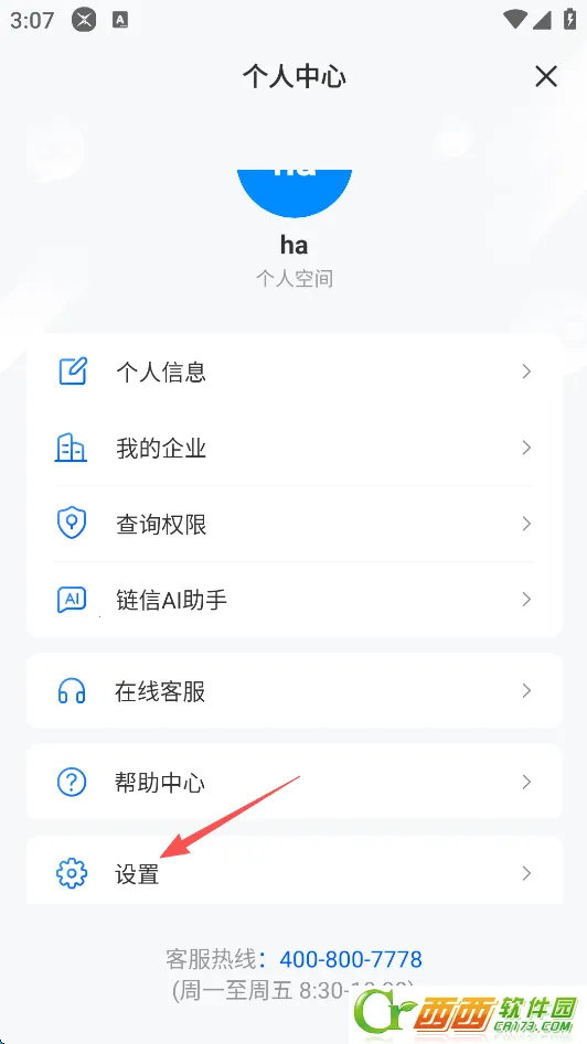 2、点击屏幕下方的“设置”。