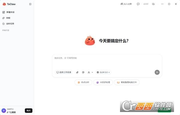 3、进入主页面后,ToClaw就已经准备就绪,等待你的指令了