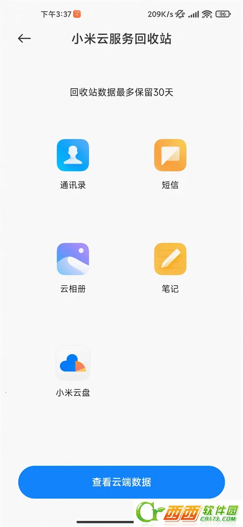 1、下载并打开小米云服务app,点击【回收站】选项;