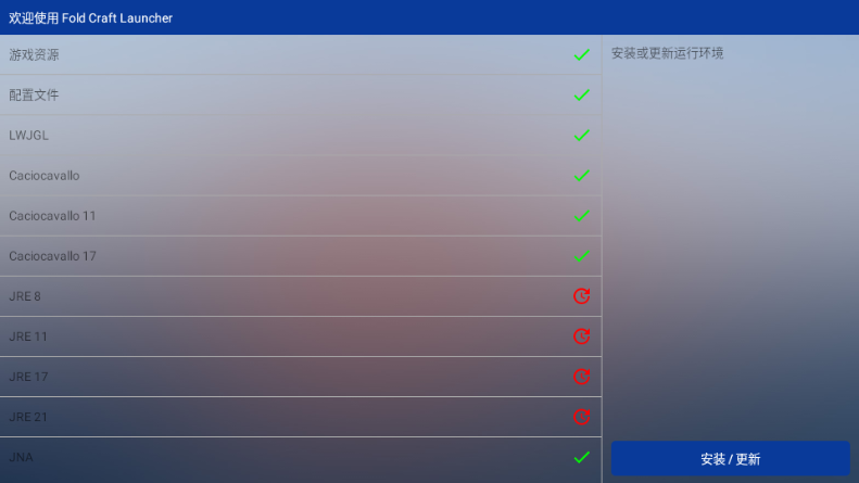 注意:第一次进入mcpebot启动器,一定要安装或更新运行环境。