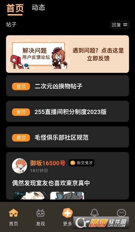 2、进入首页,查看推荐动态、热门话题,浏览同好分享的精彩内容。