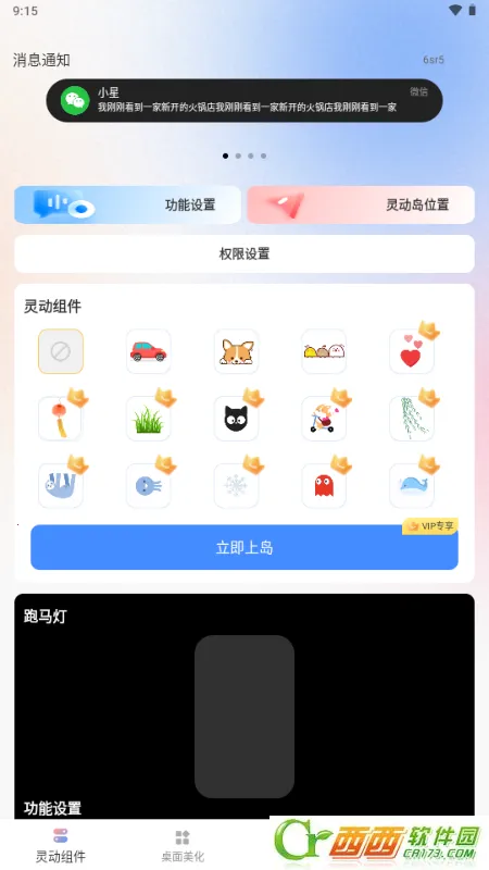 灵动屹小组件app官方版是一款集通知增强、桌面美化与效率工具于一体的手机应用。能将微信等重要消息置顶悬浮,快速查看。支持多场景跑马灯特效自定义,充电来电消息提醒有专属灯光效果。提供丰富个性化组件与壁纸资源,可自由组合搭配。内置番茄专注计时功能,助用户高效管理时间。软件整体轻量化运行,占用资源少操作流畅,兼顾实用性与观赏性,满足多种需求。