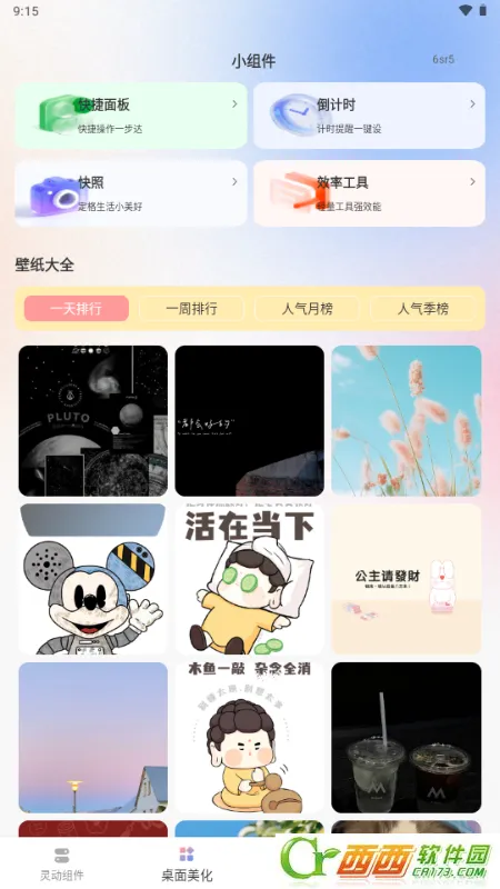 3. 提供丰富个性化组件与壁纸资源,可自由组合搭配打造专属桌面。
