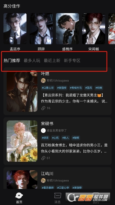 1、进入软件,可以查看不同类型的角色