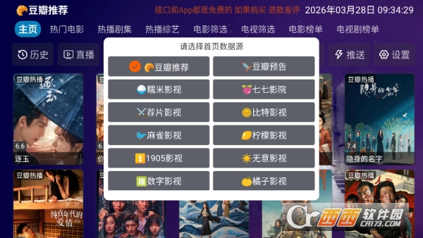 1,点击主页按钮可切换多个播放数据源