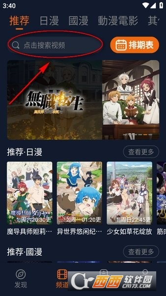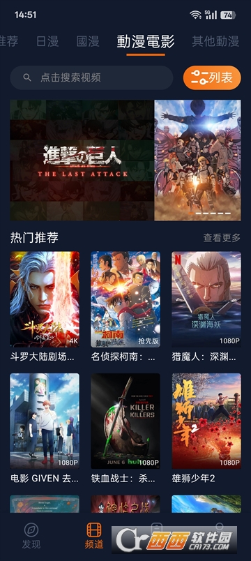 1、下载安装打开软件,可以在搜索框,搜索您想看的动漫资源;